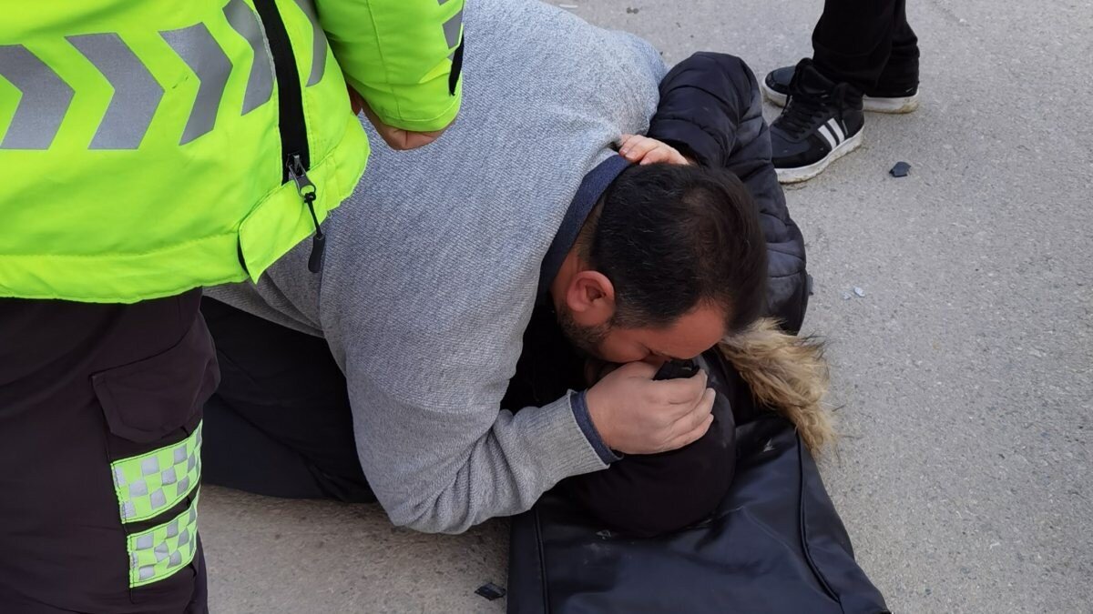 Çarpışmanın etkisiyle devrilen elektrikli bisikletten düşen 2 kardeş yaralandı. Yaren Arslan, kazanın etkisiyle şoka girerek, düştüğü yerden kalkıp gitmek istedi.