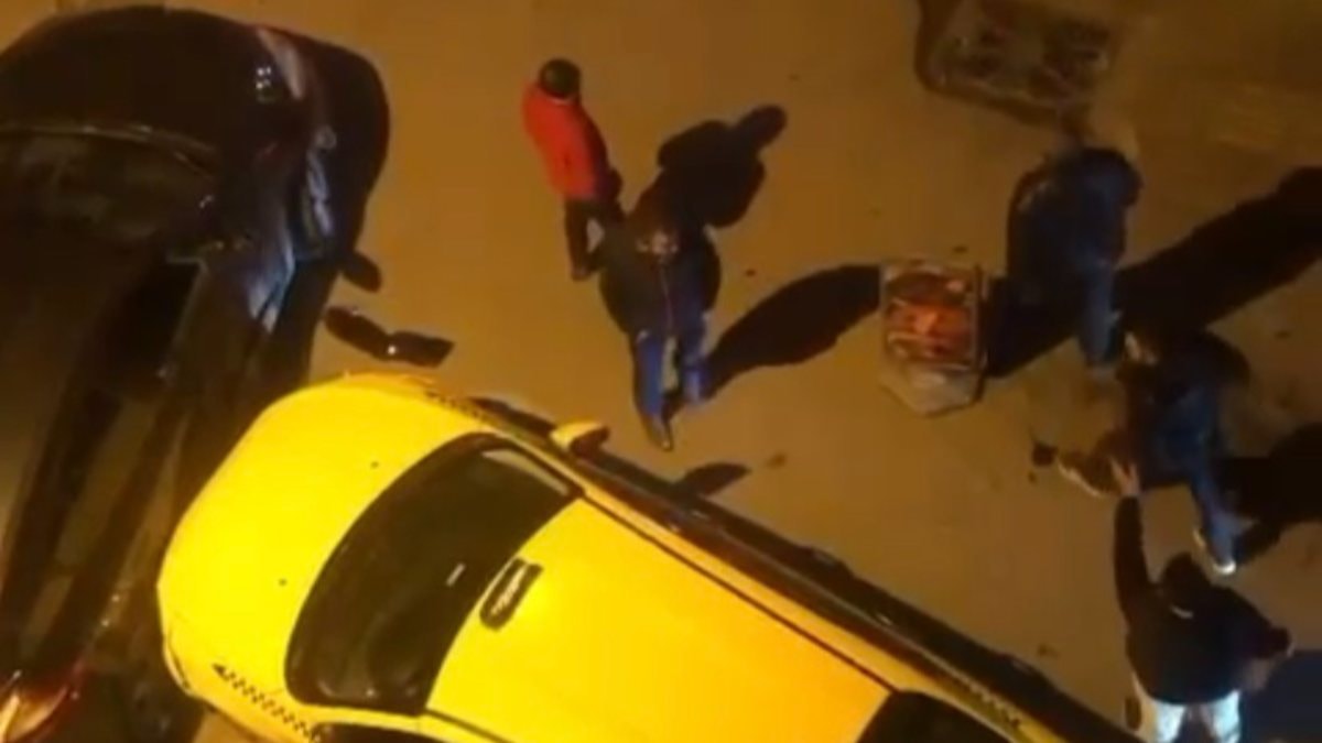 Mahalle sakinlerinin ayırmak istemesine rağmen darbelere maruz kalan taksi şoförü, bayılıp bir anda yere düştü.