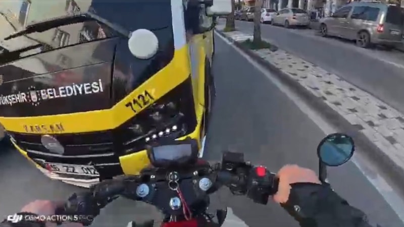 Yıldırım ilçesinde seyreden motosiklet sürücüsünün aniden önüne çıkan kamyona çarpmamak için yaptığı ani manevra sonucu ters yöne girerek karşı yönden gelen otobüsle çarpıştığı anlar kameraya yansıdı.