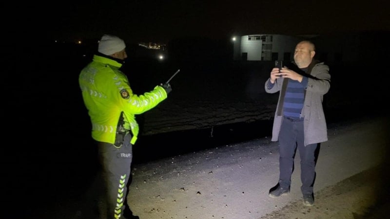 Sürücü, kaza yerine gelen polis ekiplerini görünce telefonuyla olay yerini görüntüleyip, kazayı spiker gibi anlattı.