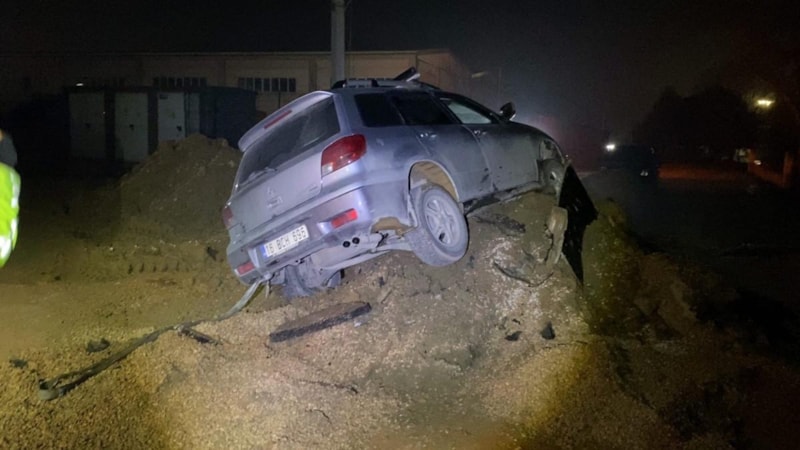 Cumhuriyet Mahallesi Mareşal Fevzi Çakmak Caddesi üzerinde seyir halinde olan İsmail U. yönetimindeki cip, sürücünün geç fark etmesi sonucu alt yapı için kazılan toprağa çarparak saplandı.