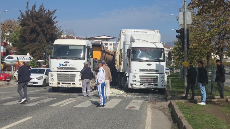 Yalova yönünden Bursa istikametine seyreden Zeki B. (69) yönetimindeki tır, kırmızı ışıkta bekleyen hafriyat kamyonuna çarpmamak için ani manevra yaptı.