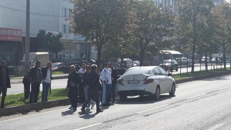 Kaza nedeniyle trafik bir süre tek şeritten sağlandı.