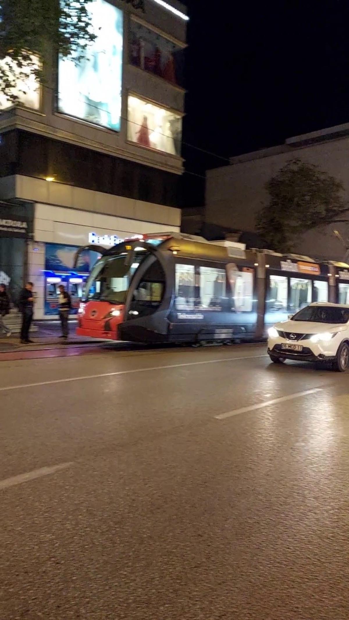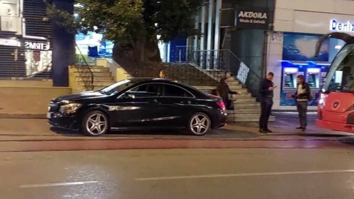 İhbar üzerine olay yerine gelen polis ekipleri, sürücüye ulaşarak aracı tramvay hattından kaldırdı.