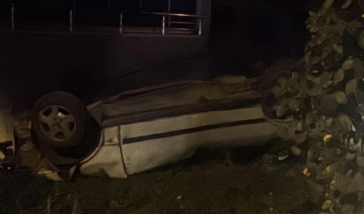 Kontrolden çıkan araç bir siteye ait beton korkuluklara aşıp takla attı.