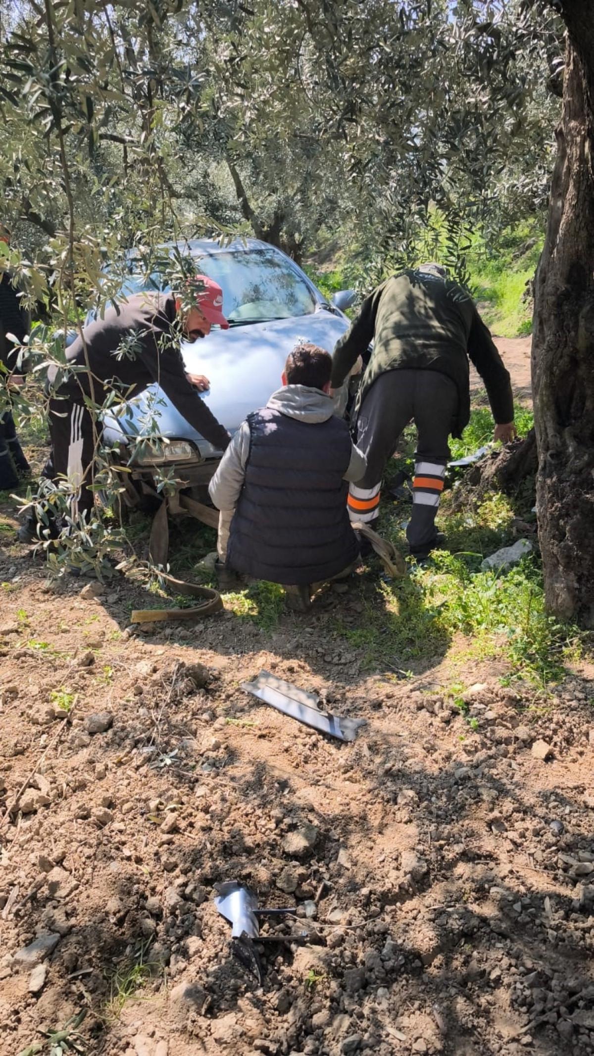 Edinilen bilgilere göre, Mehmet A. yönetimindeki otomobil, seyir halindeyken yola aniden çıkan bir köpek nedeniyle kontrolden çıktı. Köpeğe çarpmamak için manevra yapan sürücü, yol kenarındaki zeytin tarlasına daldı.