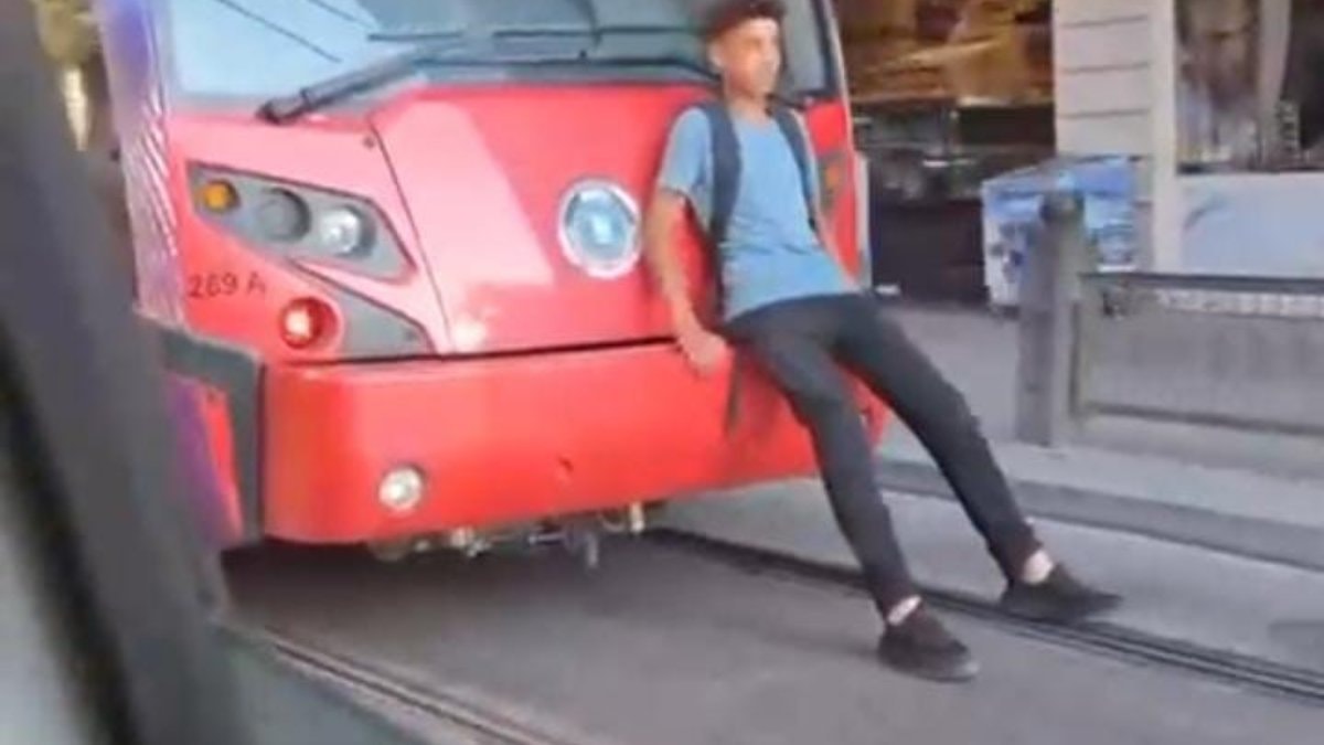 Görüntülerde, çocuğun hiçbir güvenlik önlemi olmadan tramvayın arkasında yolculuk ettiği anlar net bir şekilde görüldü.