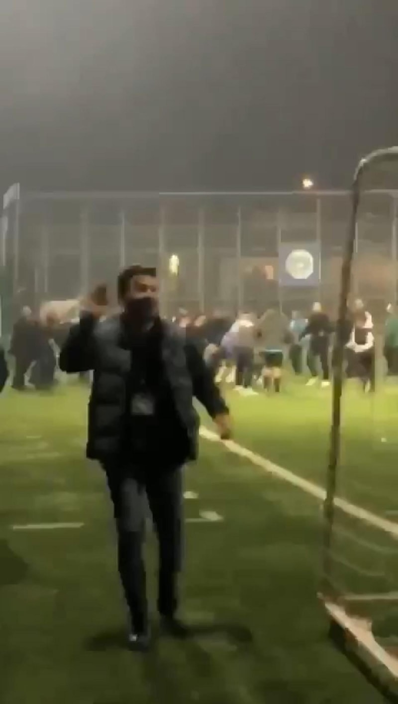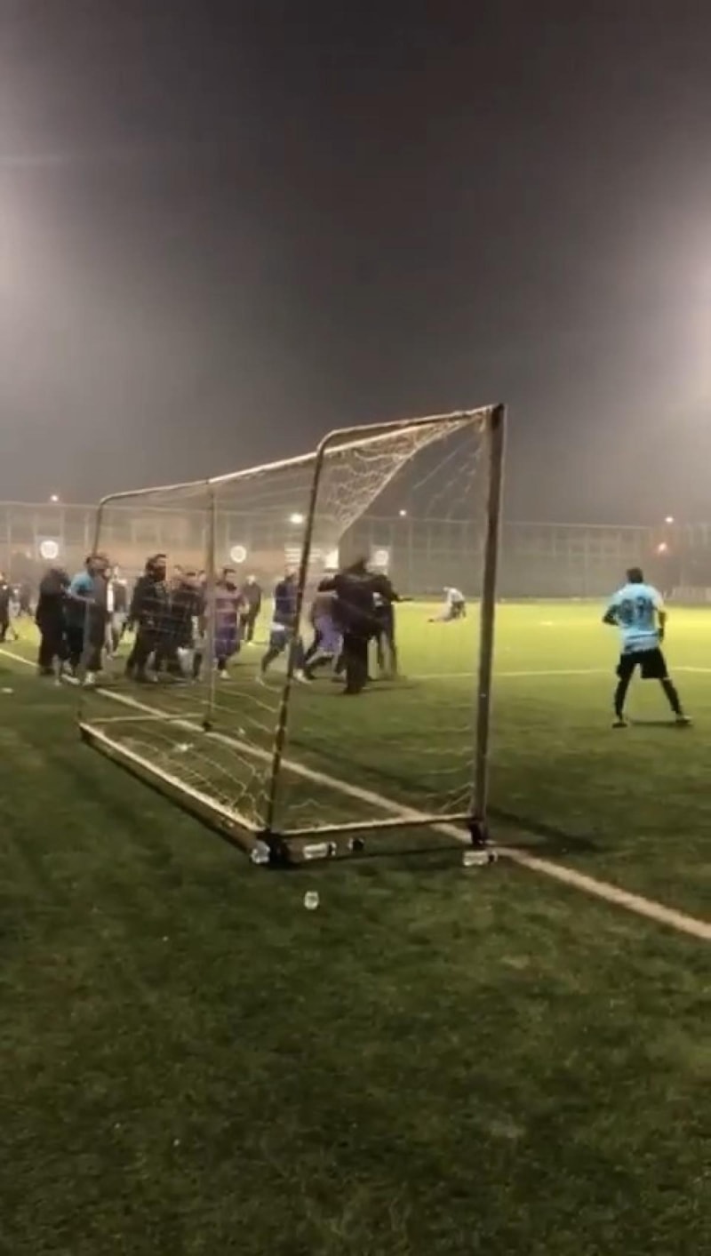 Yeşil sahaların boks ringine döndüğü anlar kameraya yansırken, çok sayıda kişi hafif şekilde yaralandı.