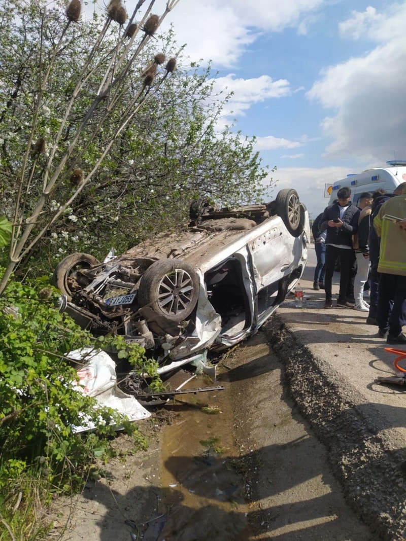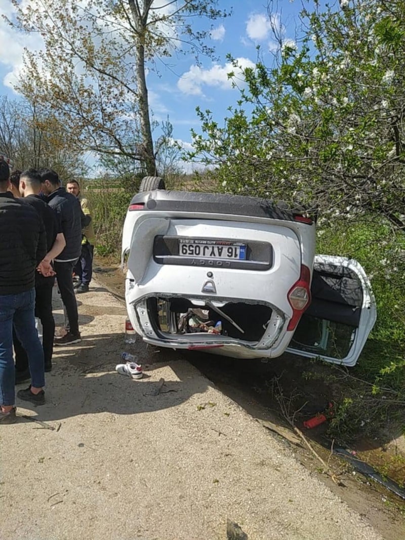 İnegöl ilçesinde takla atıp yol kenarındaki yağmur suyu kanalına düşerek ters dönen otomobilde bulunan ve sıkışan 4 kişi yaralandı.