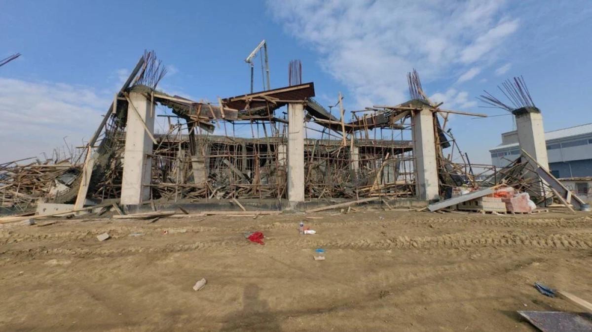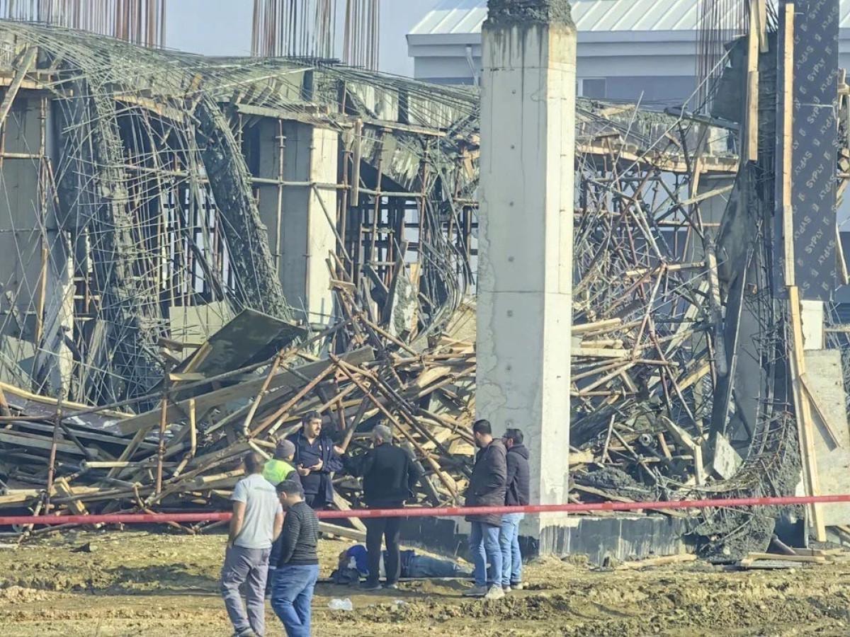 Akhisar Mahallesi 161'inci Sokak'taki fabrika inşaatının 2'nci katında beton dökülürken iskele çöktü.