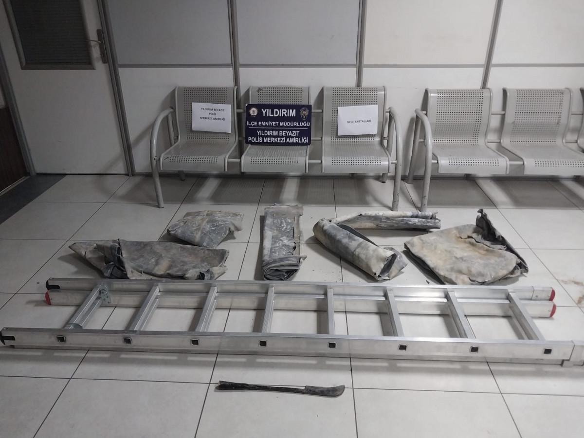 Bursa'nın merkez Yıldırım ilçesi Yıldırım Caddesi’nde Osmanlı Padişahı Sultan Yıldırım Bayezid Han tarafından yaptırılan 634 yıllık Yıldırım Külliyesi’nin içinde yer alan ve Osmanlı Devleti’nin ilk hastanesi olma özelliği taşıyan Yıldırım Darrüşifası’nın çatısına merdiven dayayarak çıkan Ahmet Ç. ile arkadaşı Şükrü Can Ş., kubbedeki kurşun levhaları sökmeye başladı.