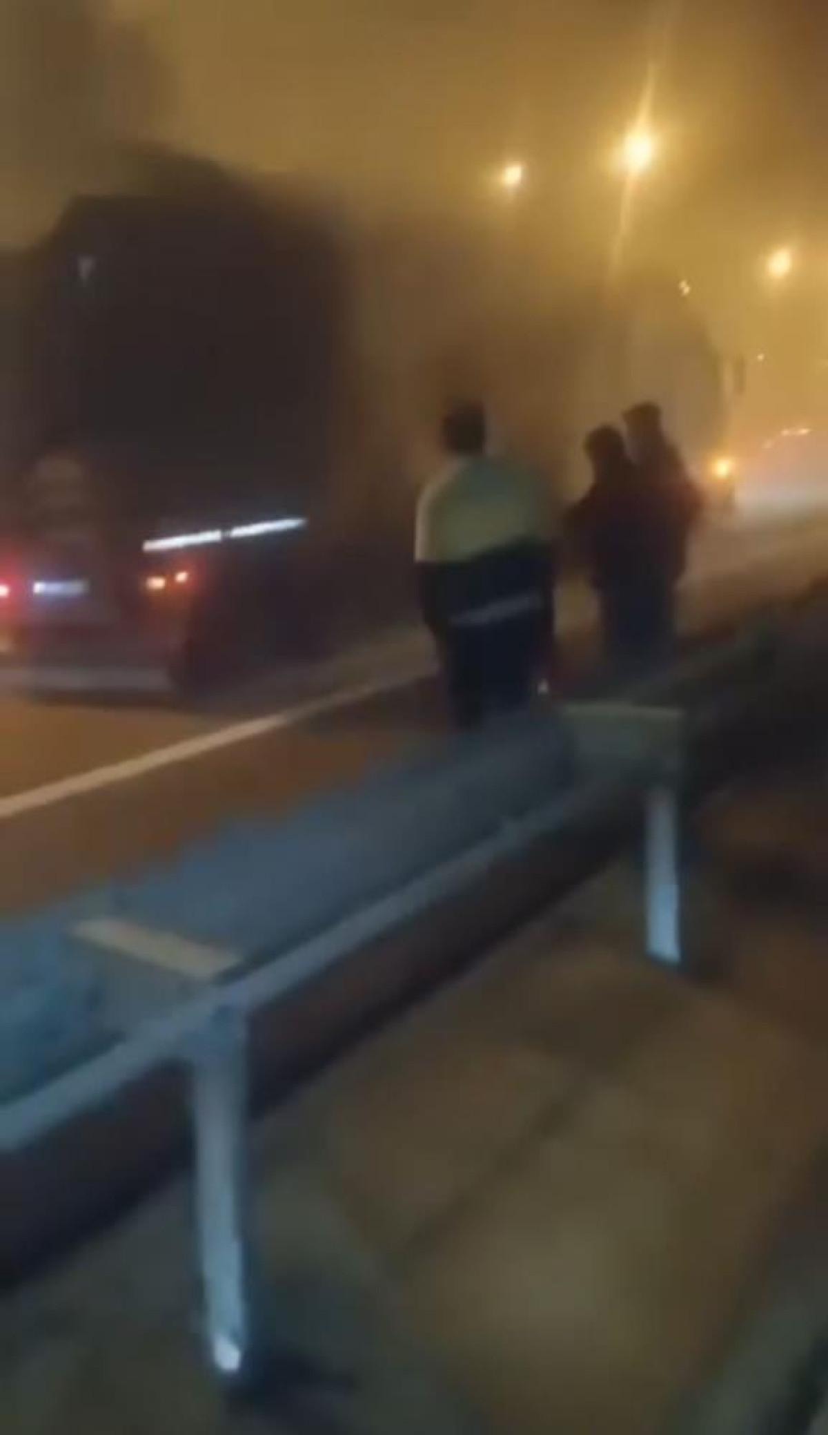 Yangın, diğer tır şoförlerinin de müdahalesiyle büyümeden söndürüldü. O anlar saniye saniye amatör kamera ile kaydedildi.