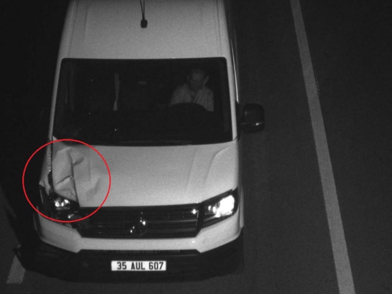 Oktay Güleryüz'ün kullandığı hafif ticari aracın kaza öncesi ve sonrasında MOBESE kameralarına yansıyan görüntülerinde ise çarpmanın şiddetiyle, aracın ön sağ kaputunda oluşan hasar görüldü.