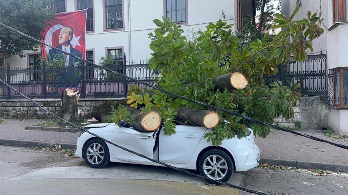 Sabah saatlerinde ise ortaya çıkan manzara bölge halkını korkuttu. Cadde üzerinde bir ağaç ve elektrik direği araçların üzerine devrildi.