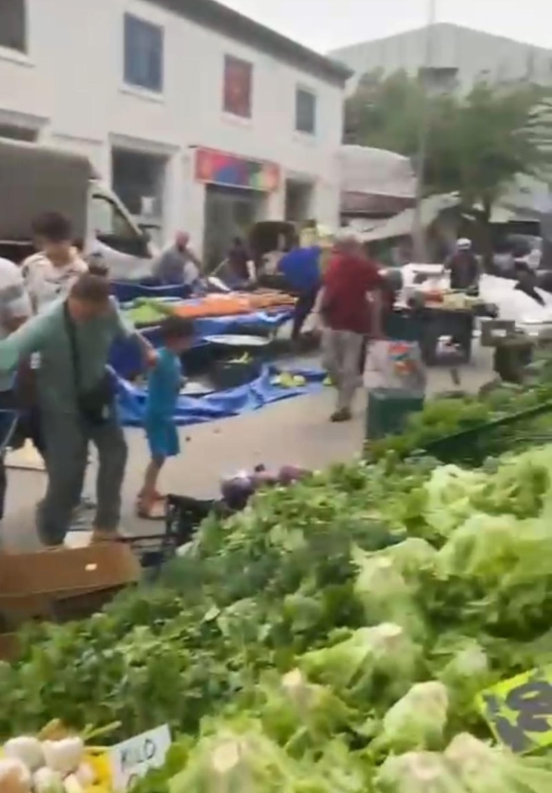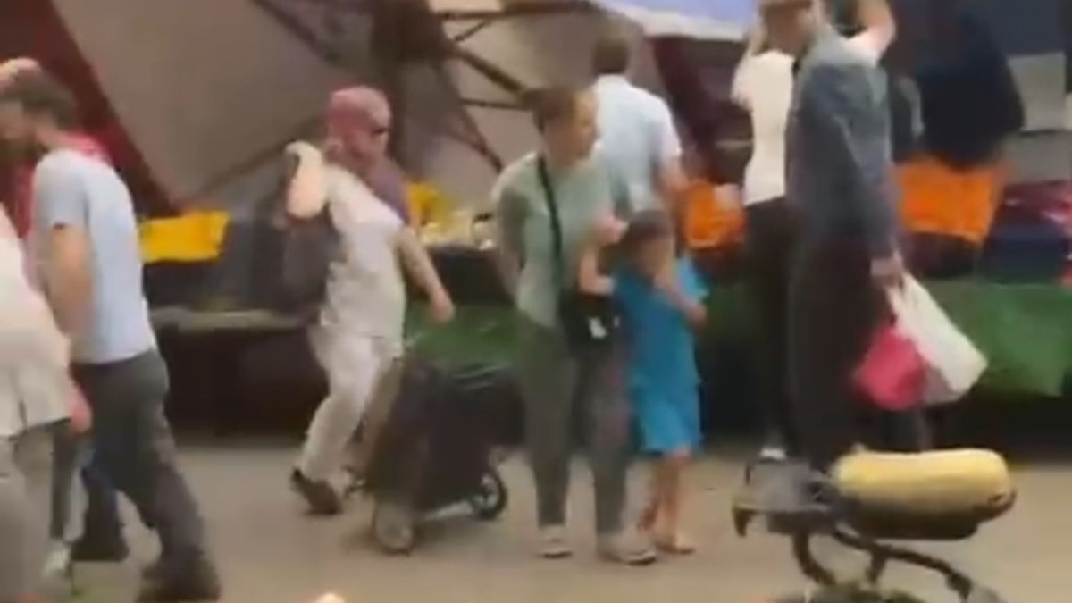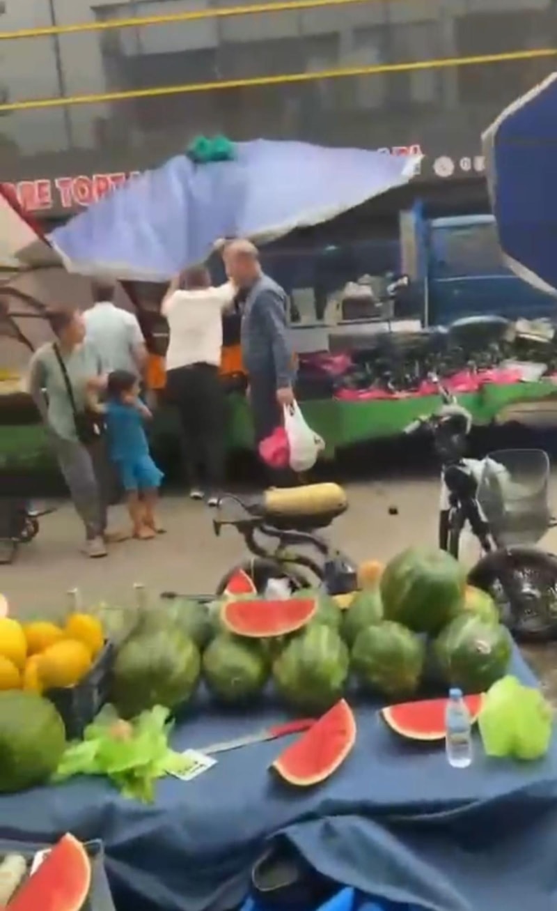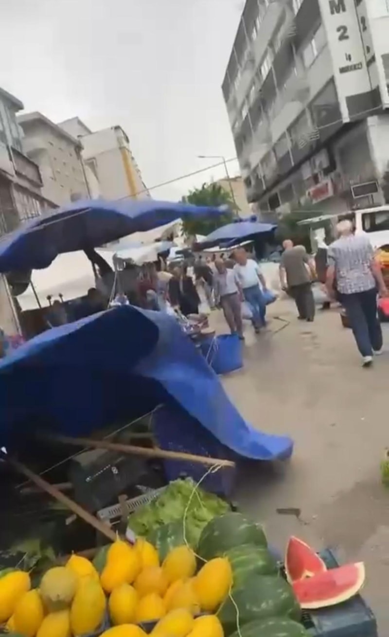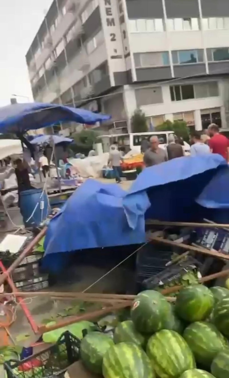 Pazarcıların devrilen çadırları uçmaması için tuttuğu anlar, cep telefonu kamerasıyla kaydedildi.