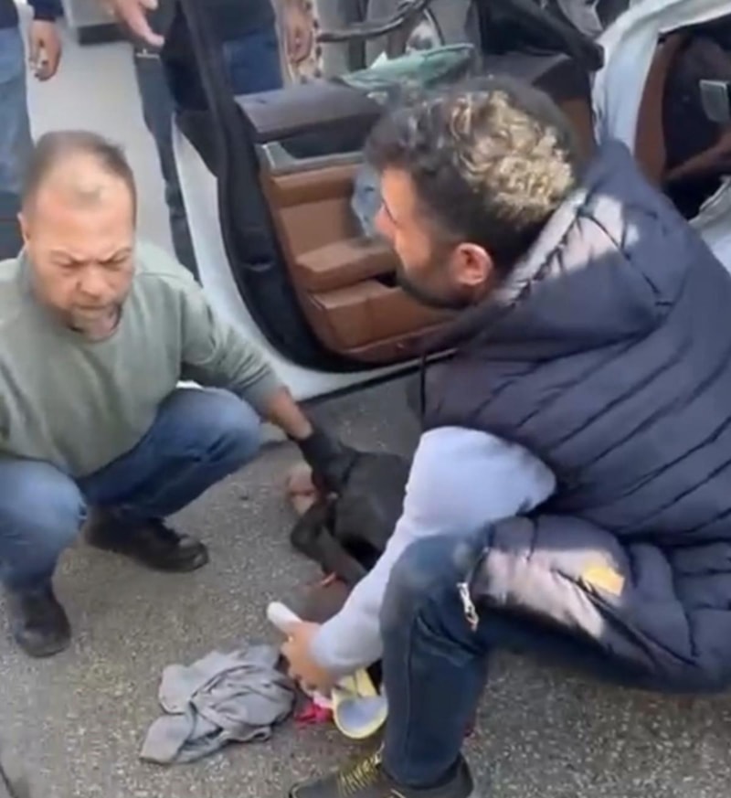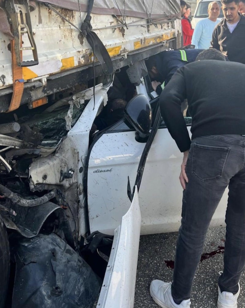 Tırın altına giren araç hundaya döndü.