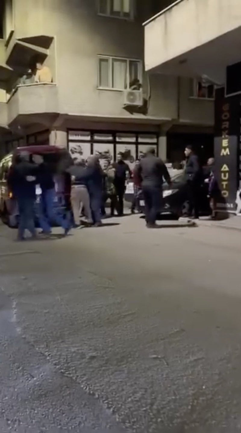 Osmangazi ilçesinde iki aile arasında çıkan tartışmanın kısa sürede büyüyerek kavgaya döndüğü anlar, bir vatandaşın cep telefonu kamerasına yansıdı.