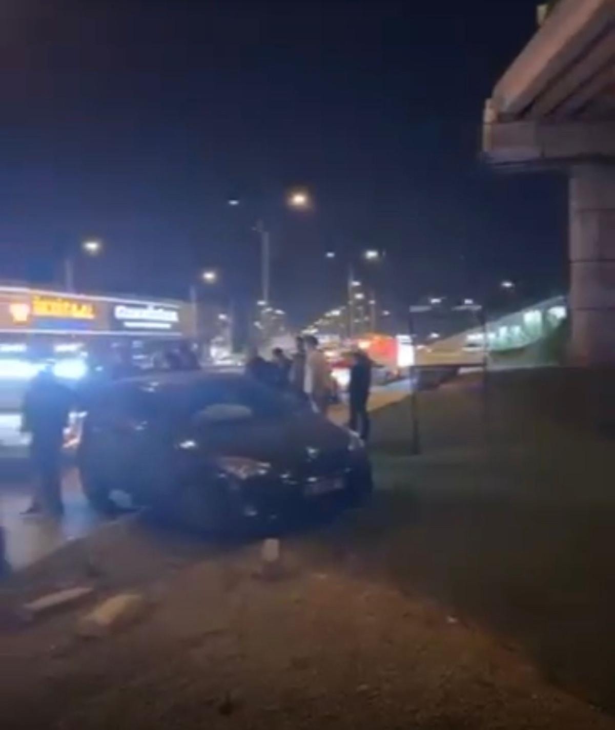 Öte yandan otomobil sürücüsünün makas attığı anlar, başka bir aracın kamerasına yansıdı.