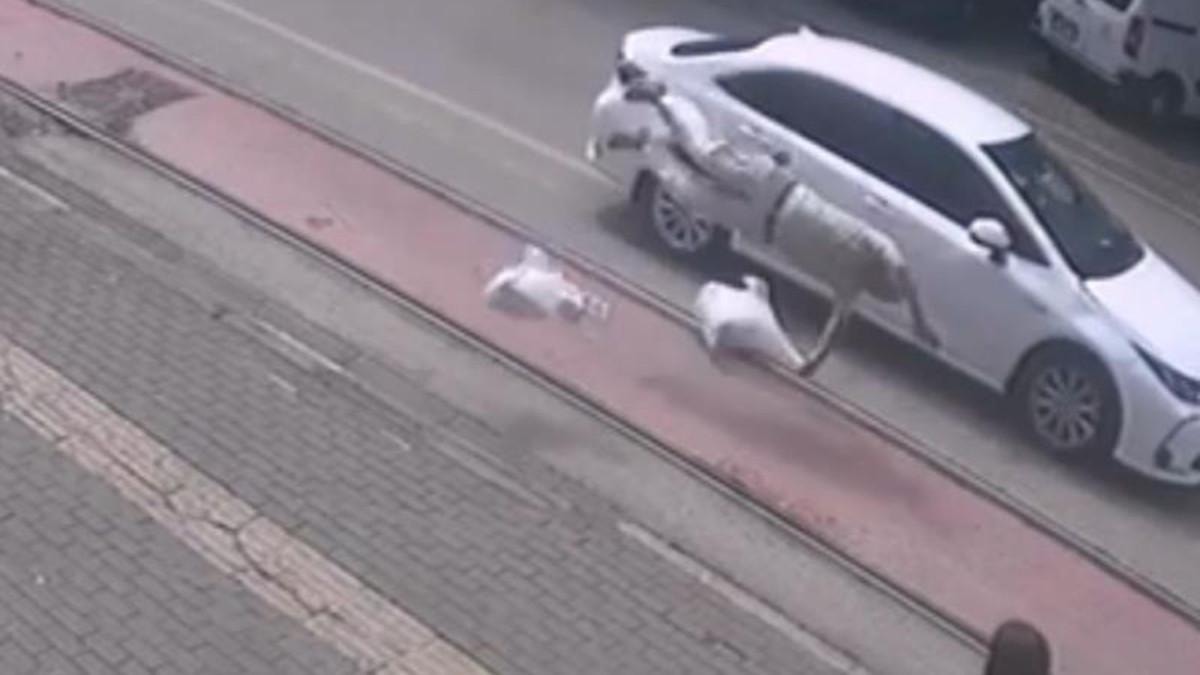 Bursa'nın Osmangazi ilçesi İnönü Caddesi üzerinde market alışverişinden çıkan İmdat B.'ye yolun karşısına geçerken otomobil çarptı.