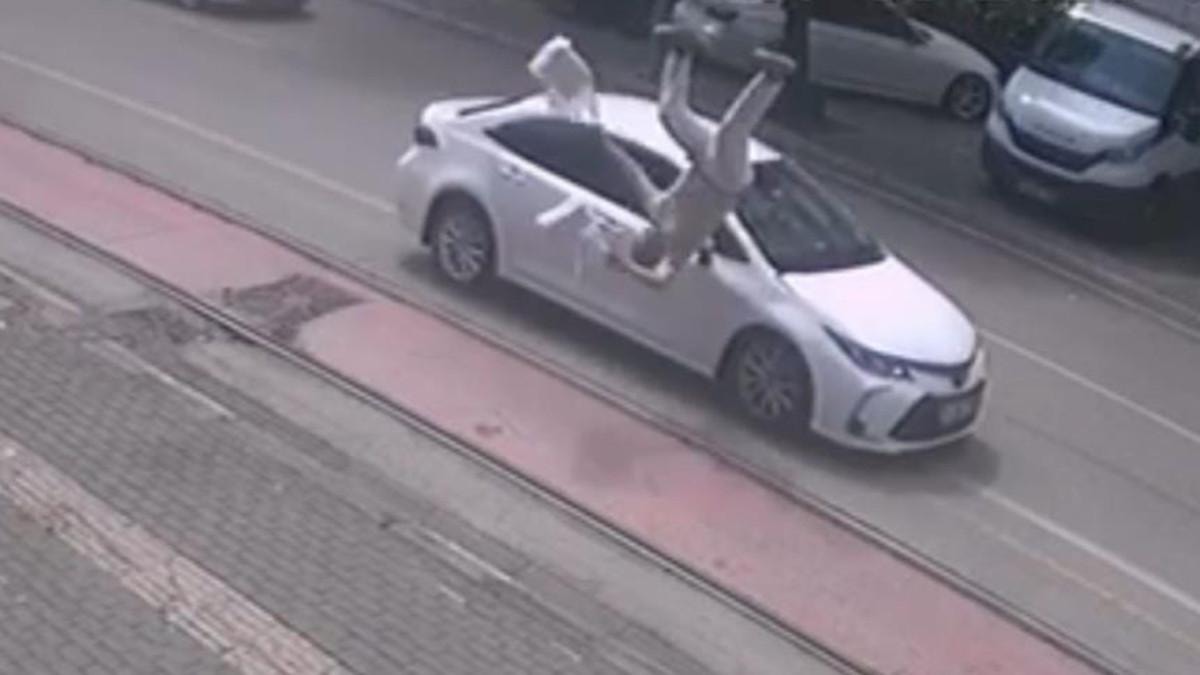 Polis ekiplerinin tahkikat başlattığı feci kaza güvenlik kamerasınca kaydedildi.