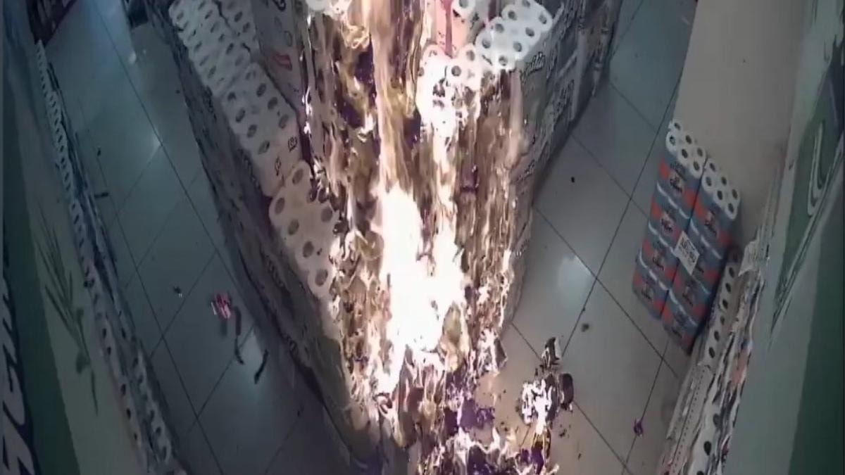 Marketin kundaklanma anı, güvenlik kameralarına saniye saniye yansıdı. Olayla ilgili tahkikatın devam ettiği bildirildi.