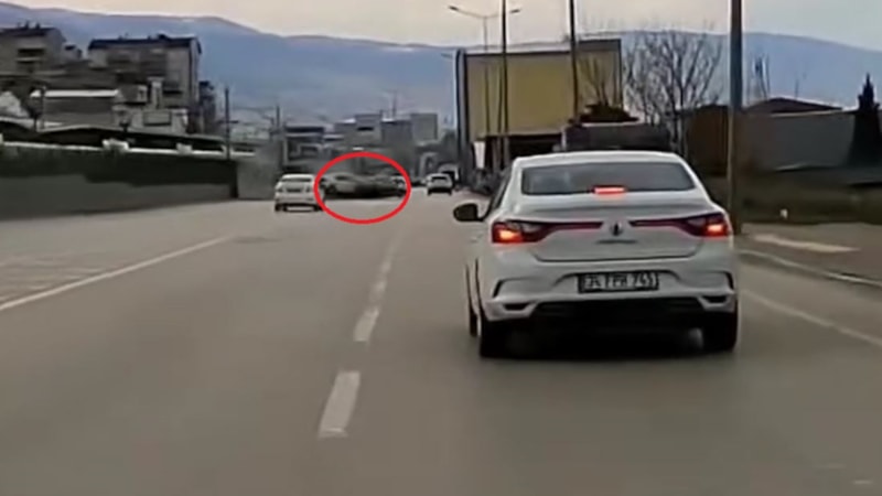 Kaza anı aynı istikamette seyir halinde olan başka bir aracın araç kamerasına yansıdı.