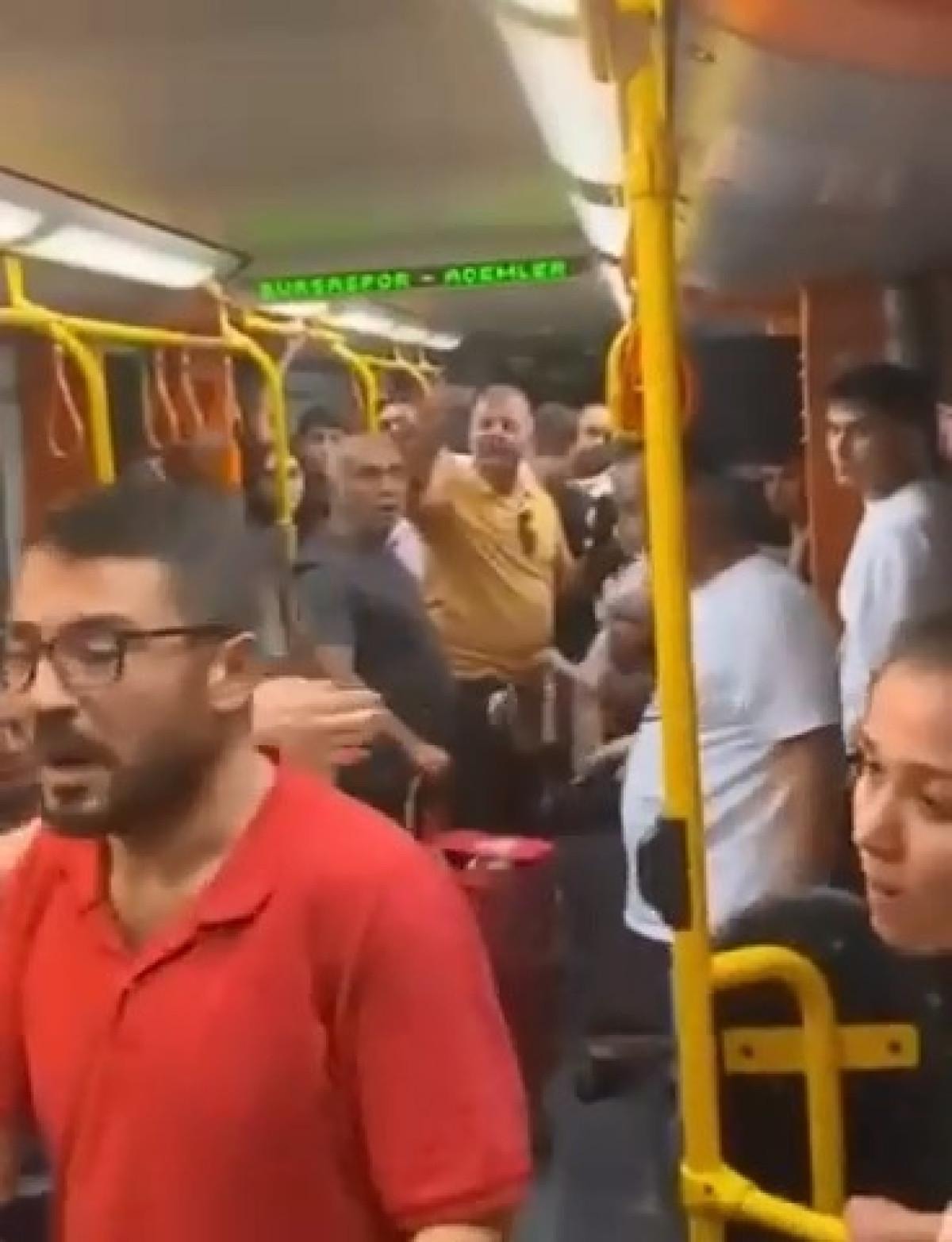 Bursa'nın Osmangazi ilçesi Acemler Metro İstasyonu'nda meydana gelen olayda, yolcular arasında yer verme meselesi yüzünden tartışma çıktı.