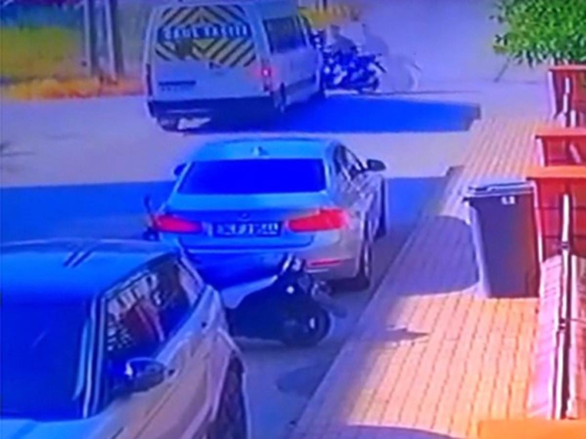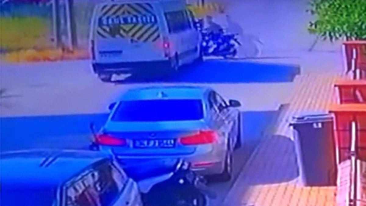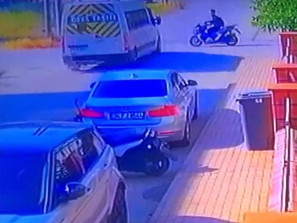 Öte yandan kaza anı bir iş yerinin güvenlik kamerasına anbean yansıdı.