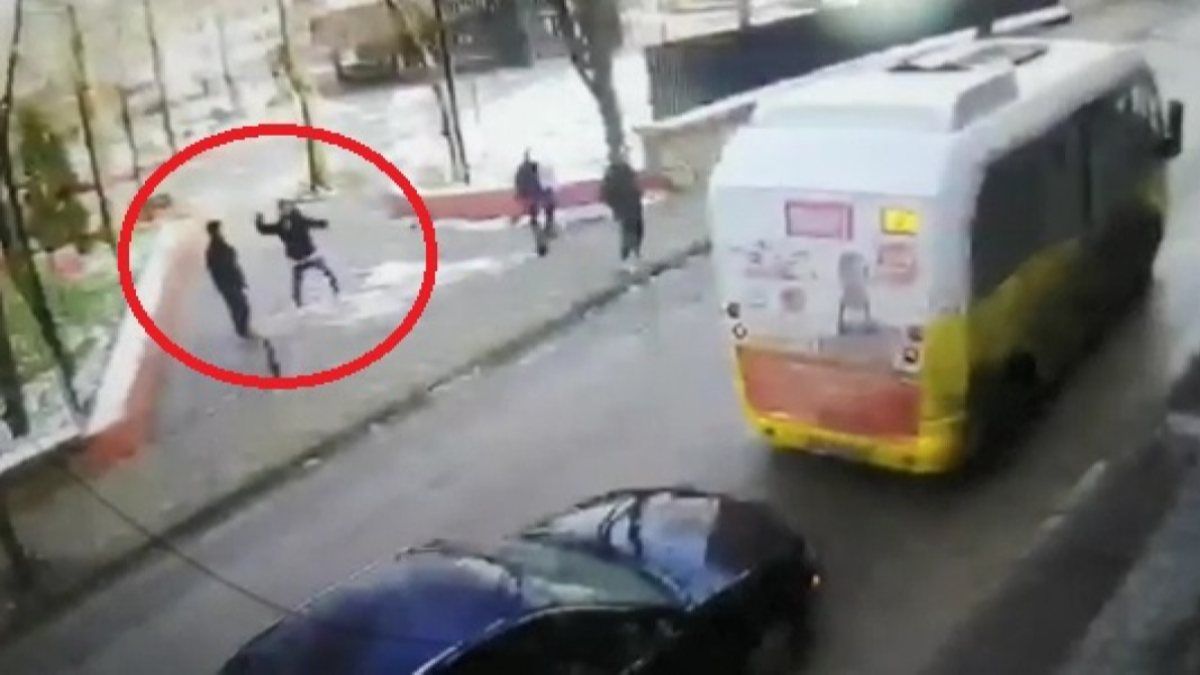 Gençlerin yoldan geçen araçlara kar topu attığı anlar, çevredeki bir iş yerinin güvenlik kamerasına yansıdı. Kamera görüntülerinde, kendi aralarında oynayan 4 gencin daha sonra araçlara kar topu atmaya başladığı, bu sırada yoldan geçen halk minibüsüne de attığı, sürücüsünün yolda durup gençleri uyardığı ve sürücüye saldırdığı anlar yer aldı.