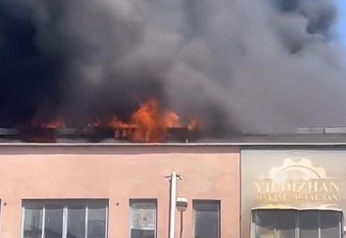 Yangın sonucu iş yerinin çatısında hasar oluştu.