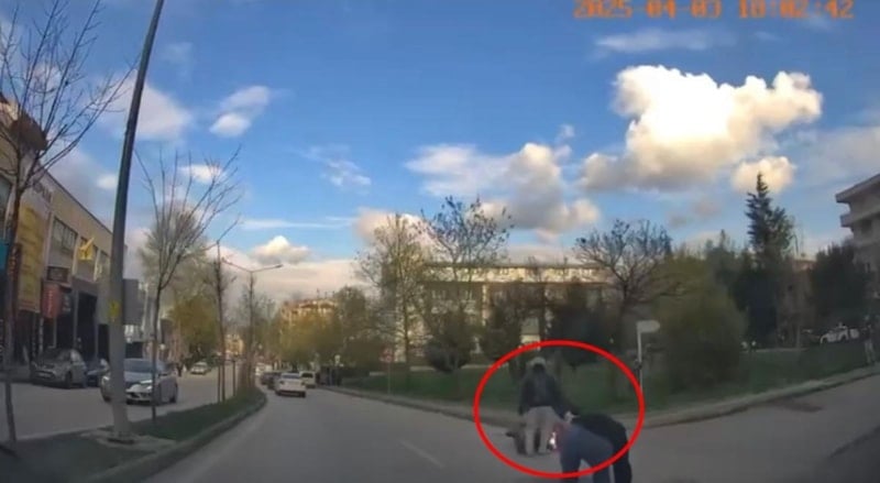 Yolun ortasına düşen sürücü ile arkadaşı, arkadan gelen otomobilin altında kalmaktan son anda kurtuldu.