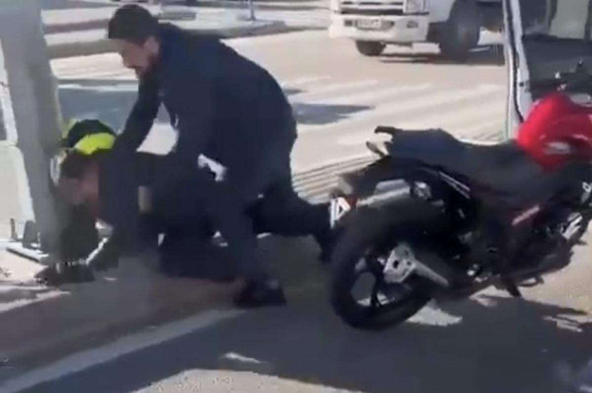 Bursa'nın Nilüfer ilçesi Üçevler Mahallesi'nde seyir halinde olan motosiklet sürücüsü ile otomobil sürücüsü trafikte tartışmaya başladı.