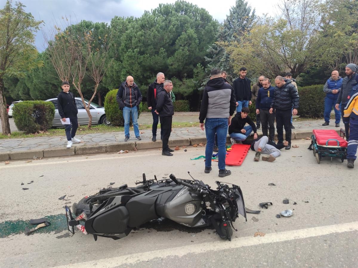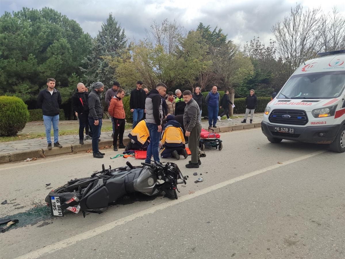Bursa'nın Orhangazi ilçesinde saat 15.30 sıralarında Arapzade Mahallesi Park İçi Yolu’nda Şehit Vedat Akdağ Caddesi istikametine seyir halinde olan Onur S.’nin (24) kullandığı 16 BEH 195 plakalı motosiklet, sürücüsünün kontrolünden çıkarak, karşı yönden gelen Muhammet B. (42) idaresindeki 16 T 4738 plakalı taksiye çarptı.