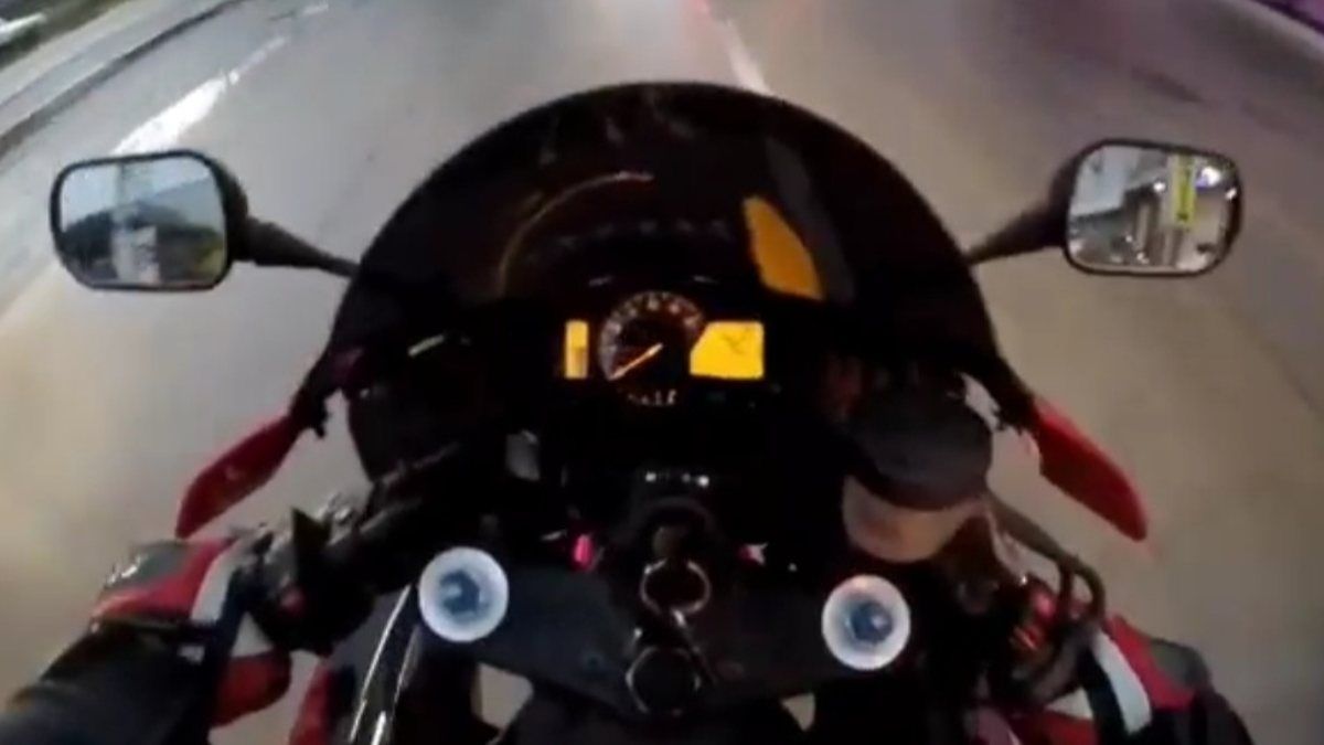 Kazayı gören çevredeki vatandaşların yardımıyla ayağa kalkan sürücü, motosikletine binerek yoluna devam etti. O anlar, kask kamerasına yansıdı.