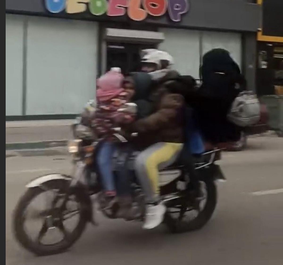 Motosiklete 6 kişi binerek ilerlemeye başlayan aile, hem kendi canlarını hem de çevredeki diğer vatandaşların canını hiçe saydı.