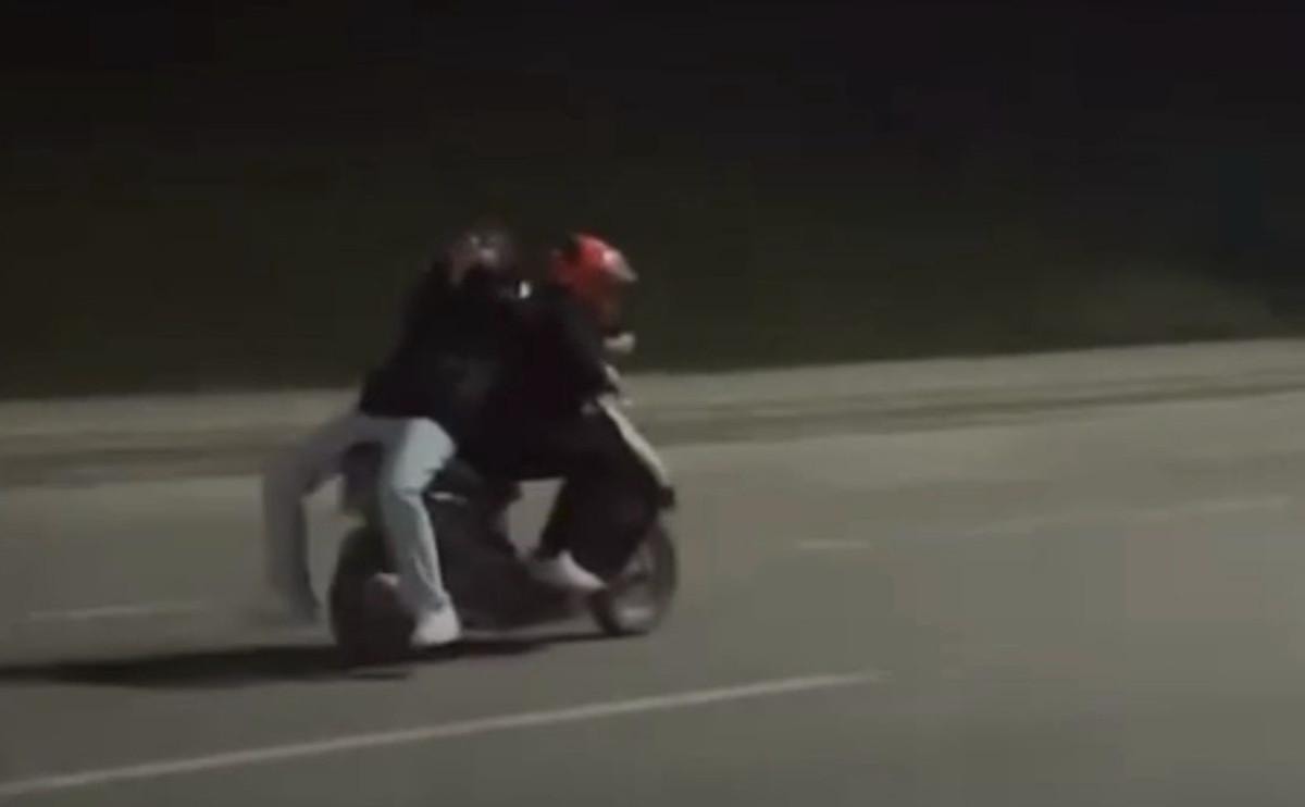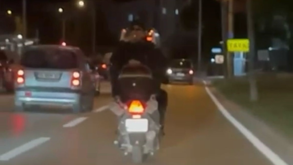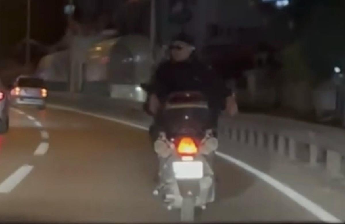 Bir süre sonra arkasına yolcu alan motosiklet sürücüsü, yolcuyu da ters bindirdi.