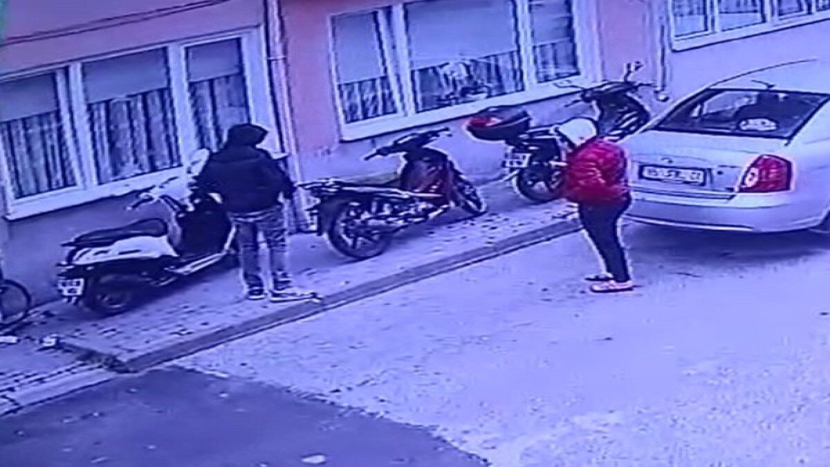 Bir süre etrafı izleyen hırsızlar, daha sonra park halinde olan motosikleti çalıp olay yerinden uzaklaştı. O anlar güvenlik kamerasına yansırken, hırsızlardan birinin kadın olması da dikkat çekti.