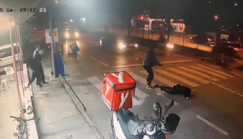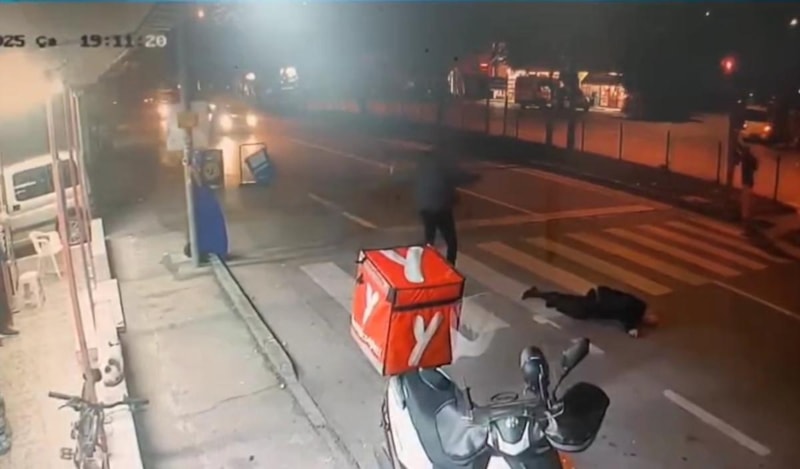 Mudanya ilçesinde kırmızı ışıkta yolun karşısına geçen 64 yaşındaki A.K.'ye motosiklet çarptı. Diğer sürücüler yere düşen yayanın yanından araçlarıyla geçip, yolarına devam ederken o anlar güvenlik kamerasına yansıdı.