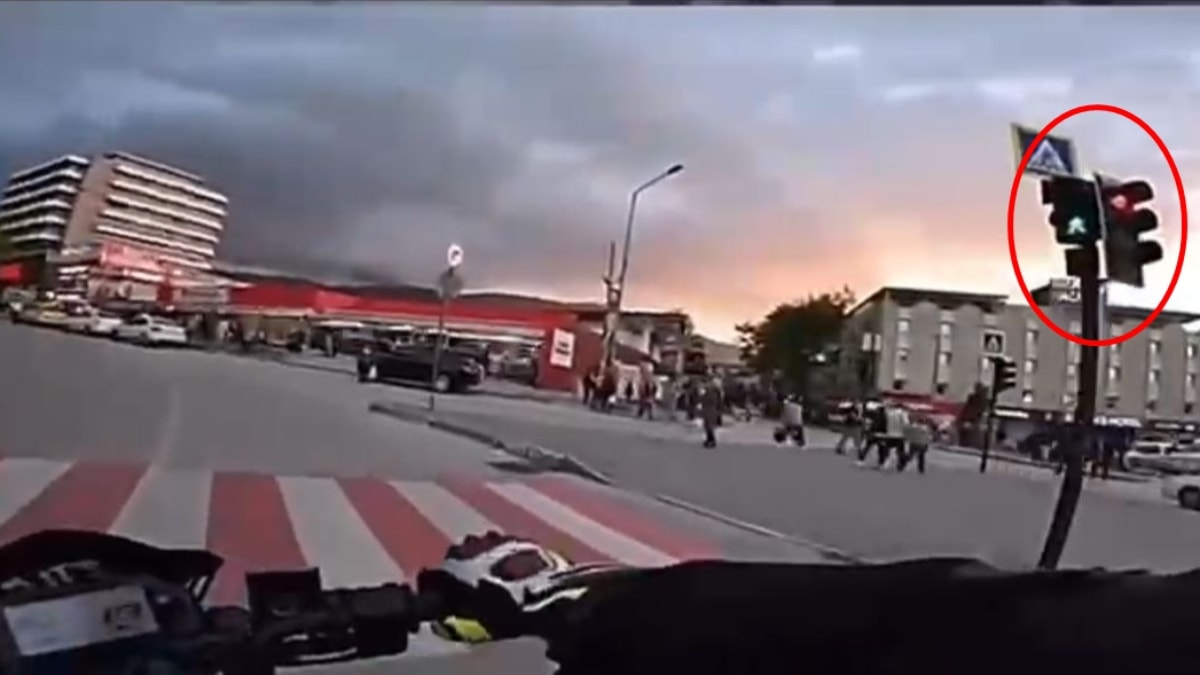 Görüntülerde, "Başlıyoruz gençler hazır mıyız?" diyerek araçlara kırmızı ışık yanarken yarışa başlayan motosikletlilerin, bir sonraki lambalarda da araçlara kırmızı ışık yanmasına ve karşıya geçen yayalara aldırış etmeden yola devam ettiği görüldü.
