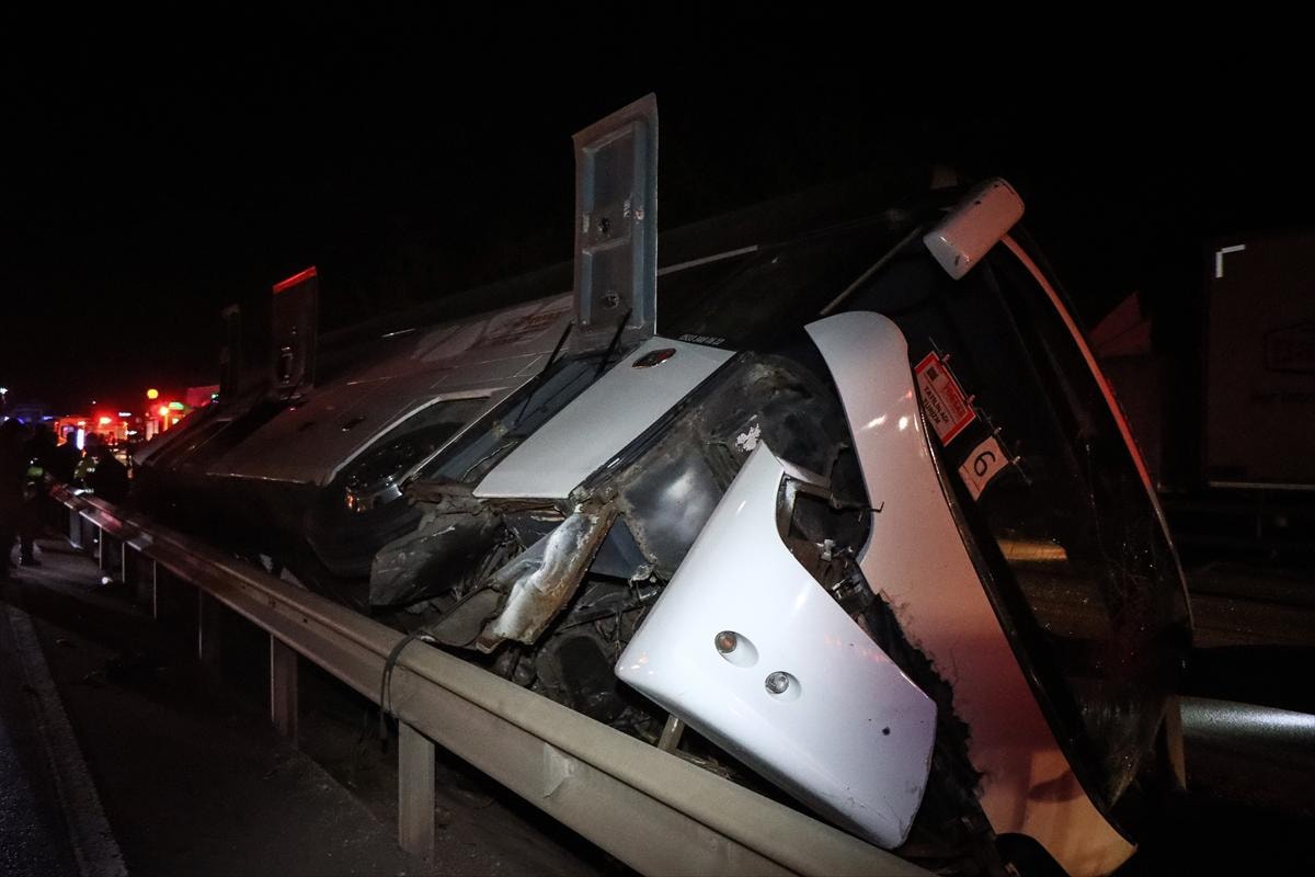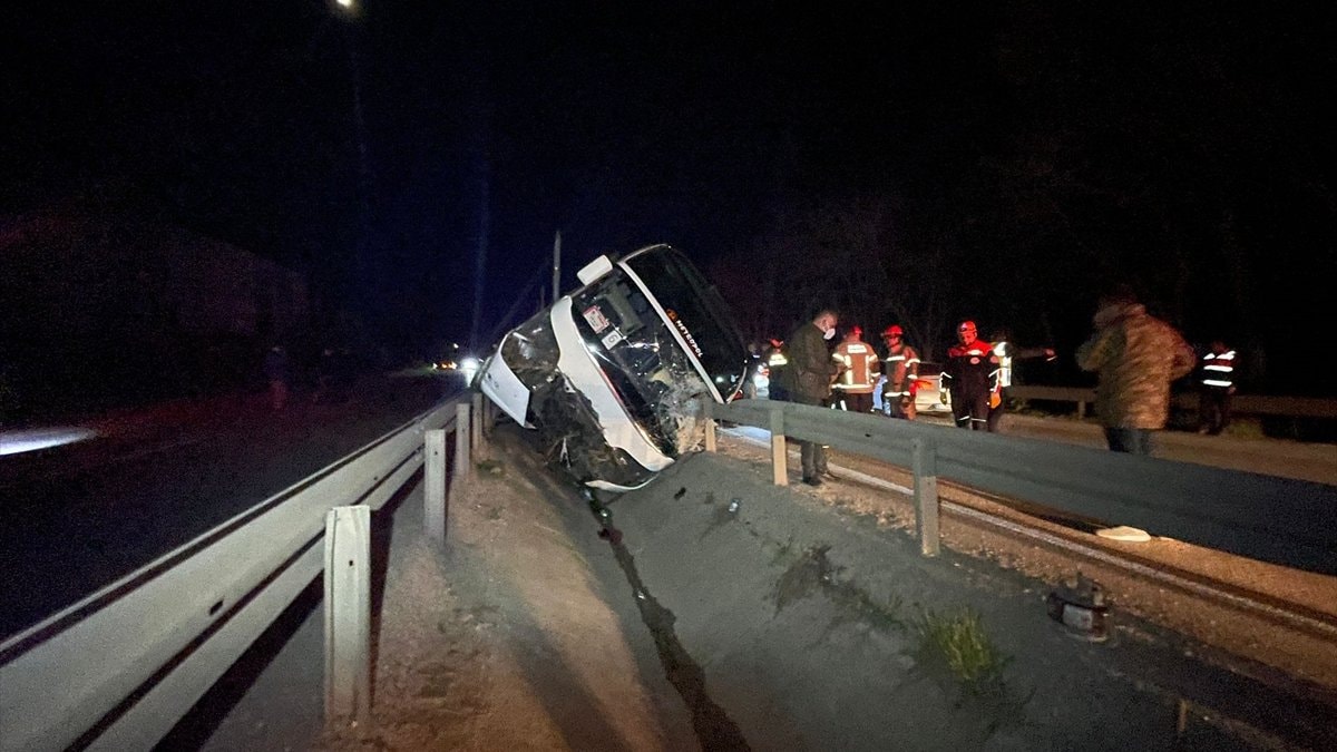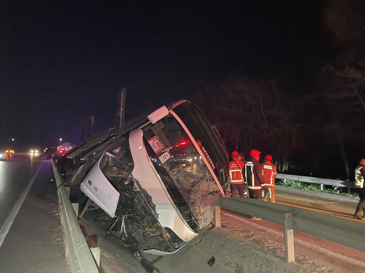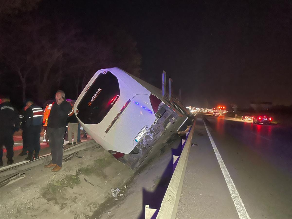 Çanakkale'den Ankara'ya gittiği öğrenilen tur otobüsü, İnegöl ilçesi Şehitler mevkisinde bariyere çarparak devrildi.