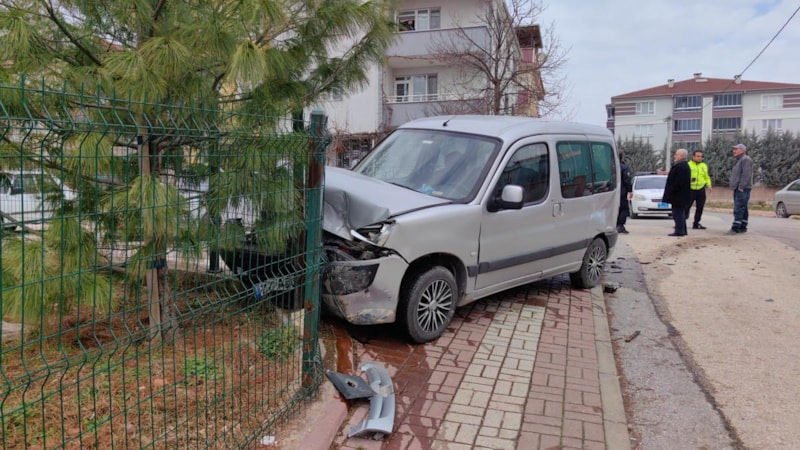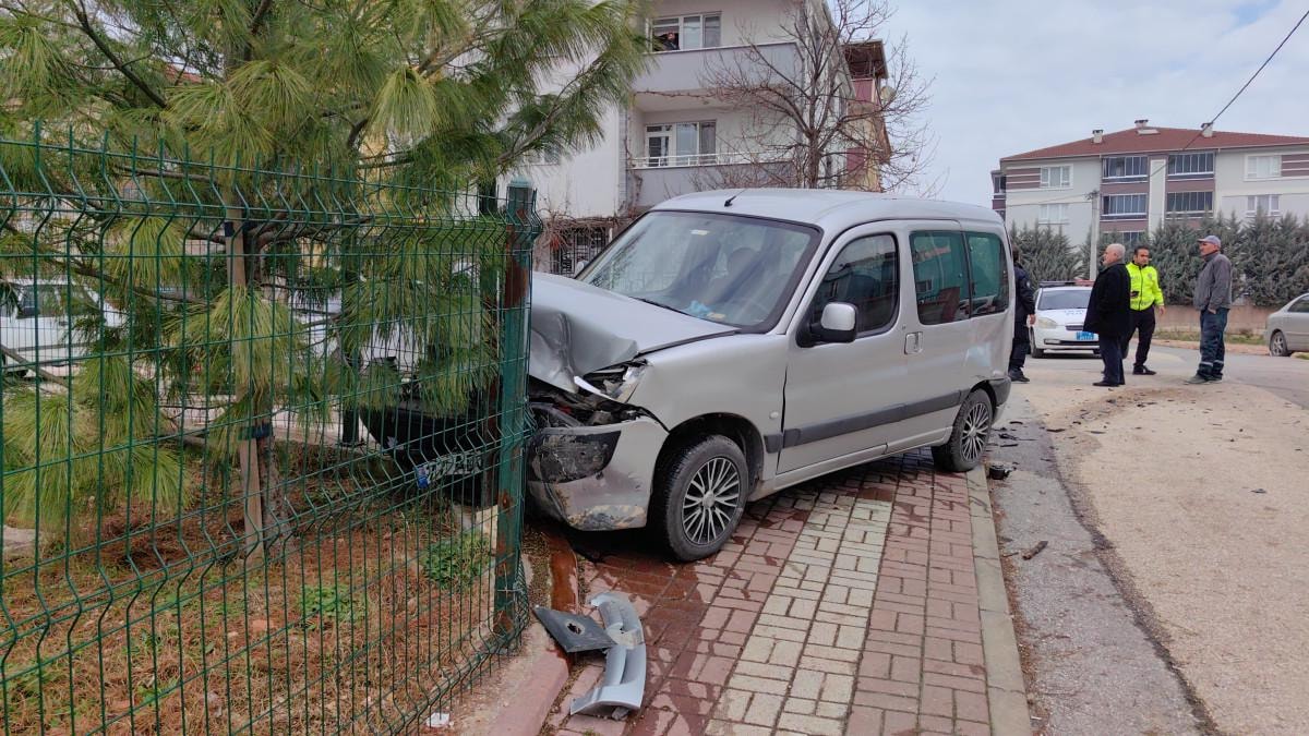 Servis minibüsü bir evin bahçe duvarına, hafif ticari araç da parkı çevreleyen tellere çarptı.