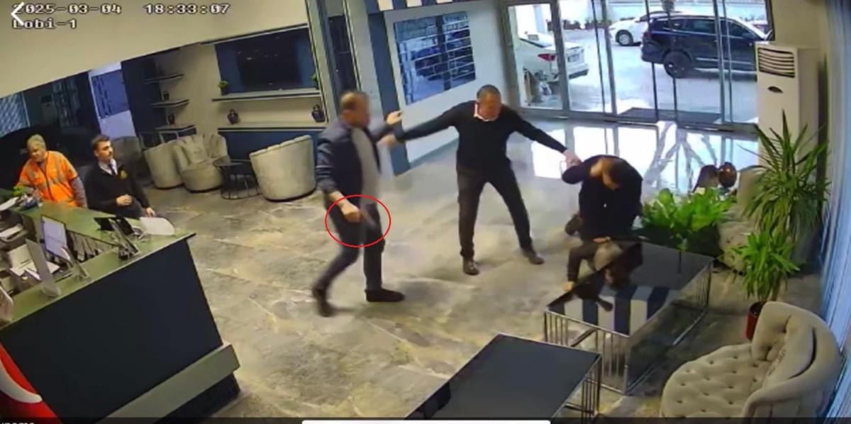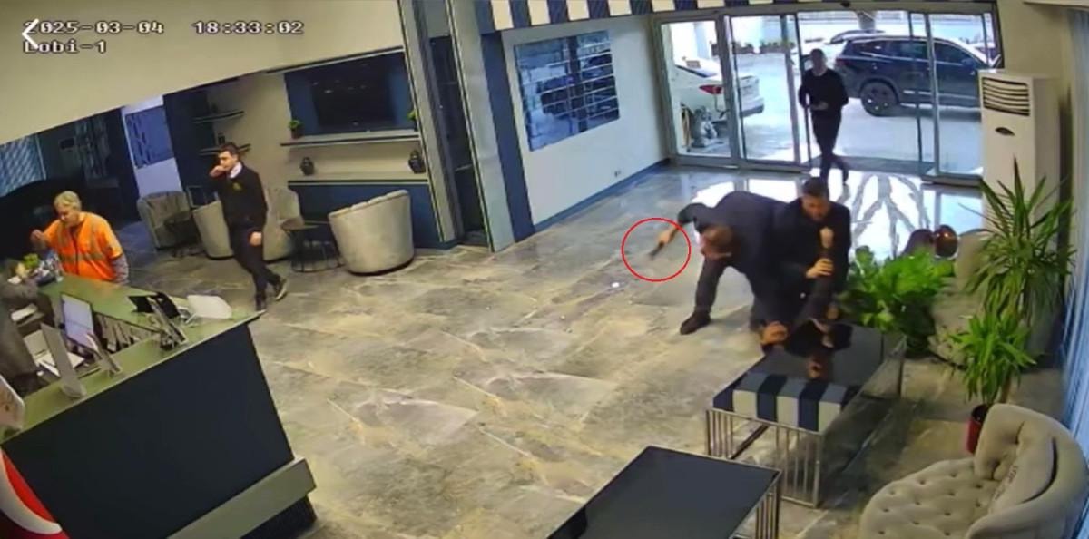 Cevzet Ö.'ün, biri elinde tabanca bulunan 2 kardeşi tarafından lobide darbedildiği anlar, otelin güvenlik kamerasına da yansıdı.