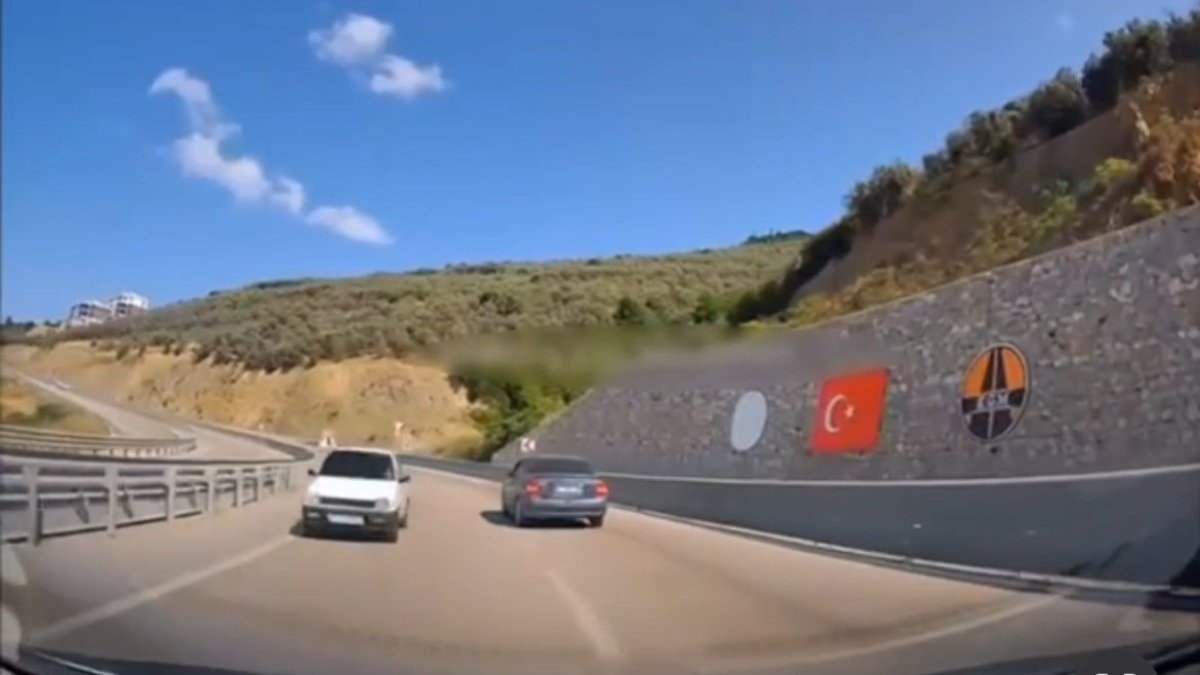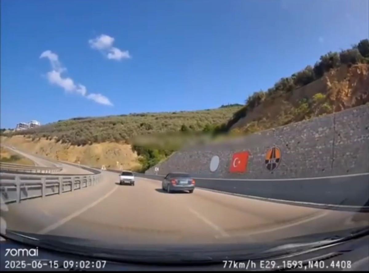 İstanbul İzmir otobanı Gemlik bağlantısında ters yöne giren bir otomobil, hızla ilerleyerek karşı yönden gelen sürücülere zor anlar yaşattı.