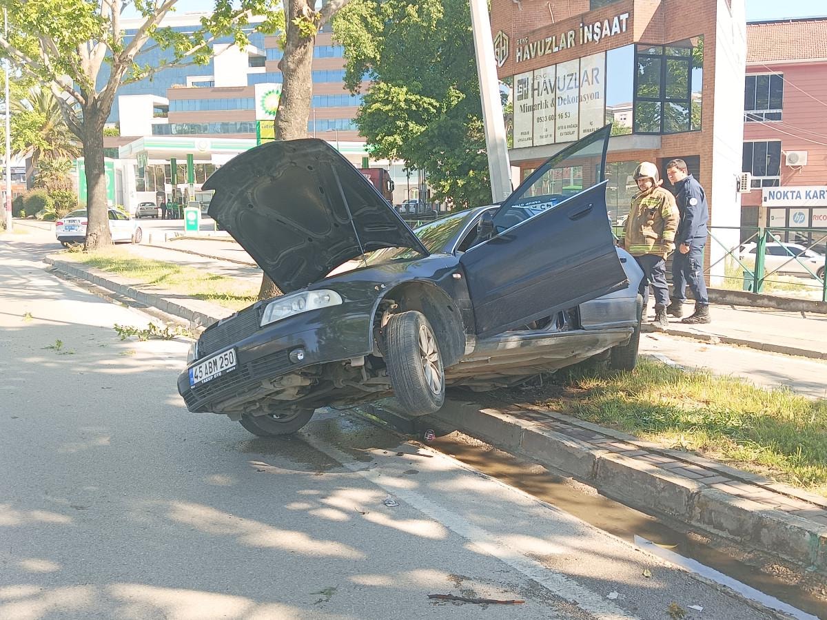 Kontrolden çıkan otomobil, yol kenarındaki aydınlatma direğine çarptı.