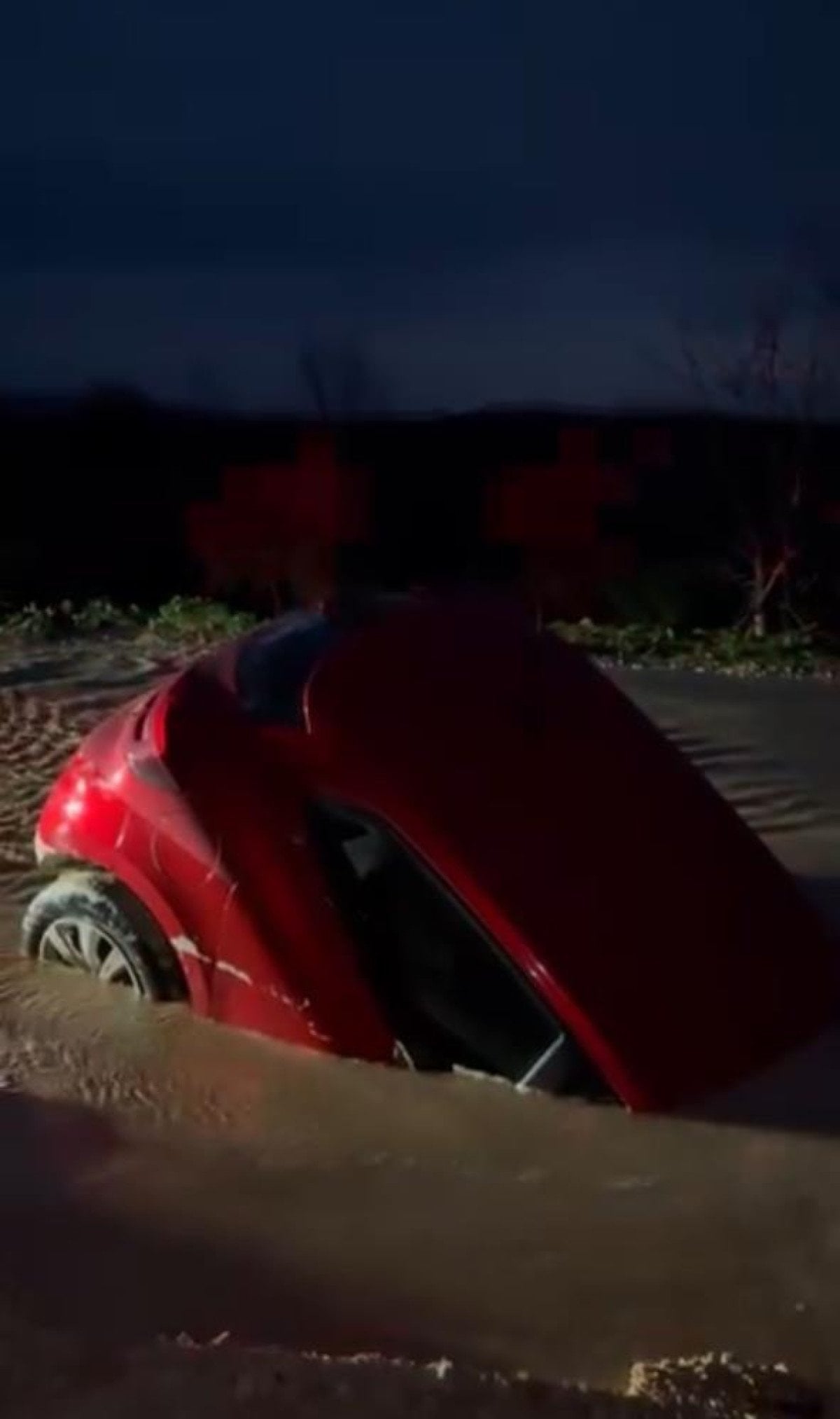 - Bursa'da bir otomobil bataklığa saplandı, ancak sürücü son anda kurtuldu.