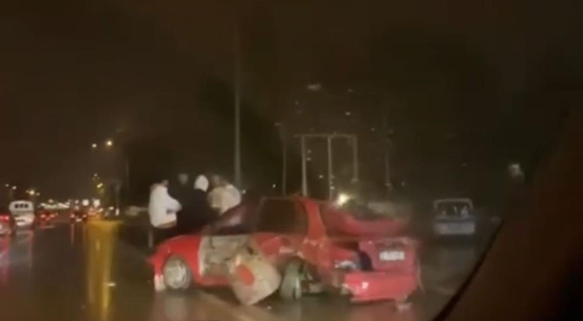 Çarpmanın etkisiyle otomobil yola savruldu.