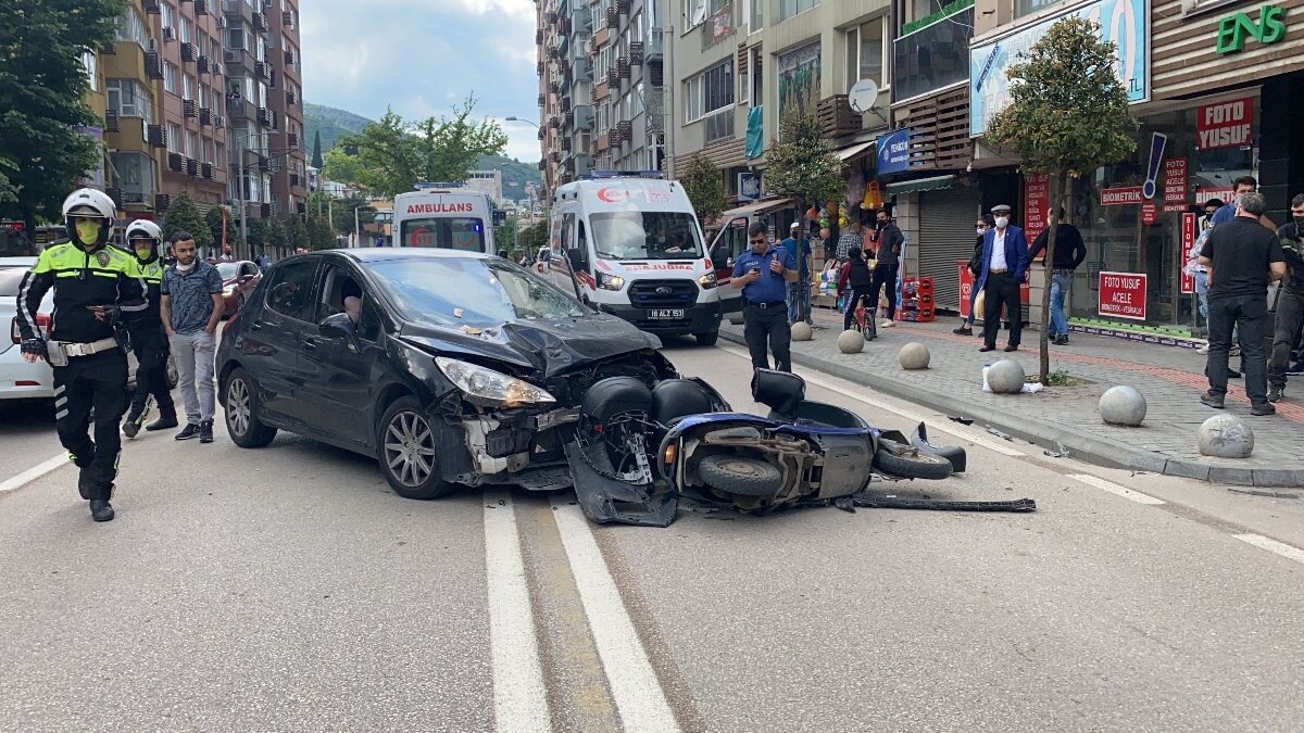 Bu sırada bir restoranda motokurye olarak çalışan Yunus Özen, sipariş götürmek için motosikleti ile Altıparmak Caddesi üzerinden Çekirge istikametine giderken aniden önüne çıkan otomobille kafa kafaya çarpıştı.