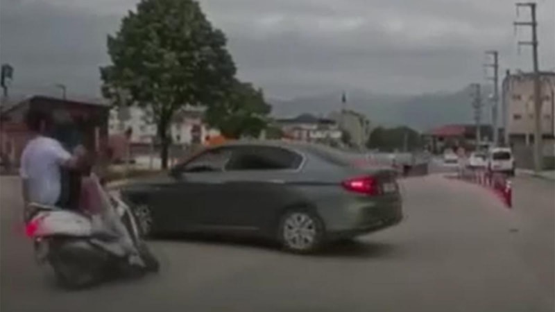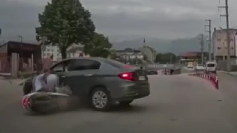 Bursa'da dönüş yapan otomobil ile motosikletin çarpıştığı kaza anı kameralara yansıdı. Kazada motosiklette bulunan 2 kişi yaralandı.