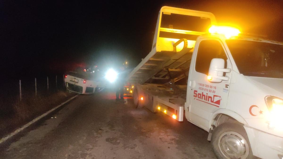 Kontrolden çıkan otomobil takla attıktan sonra yolun artasında ters bir şekilde mahsur kaldı.