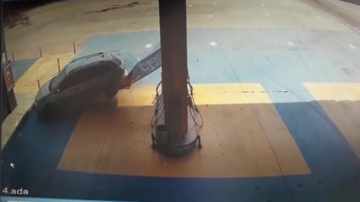 Kontrolden çıkan otomobil, yol kenarındaki akaryakıt istasyonuna girdi.